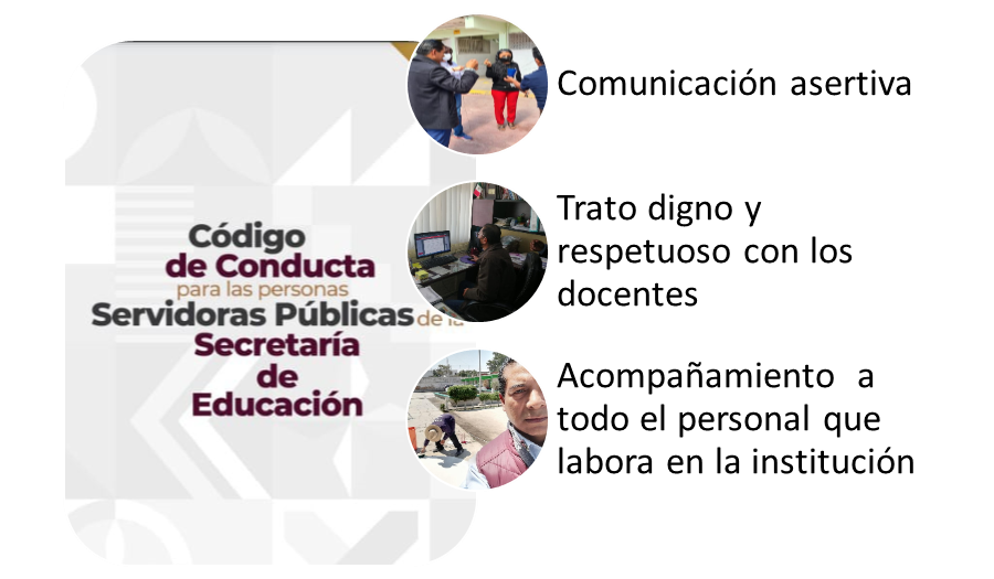 1.2.7. Identifica su desempeño de acuerdo al Código de Conducta para las personas Servidoras Públicas de la Secretaría de Educación Pública en los contextos de la Educación Media Superior.